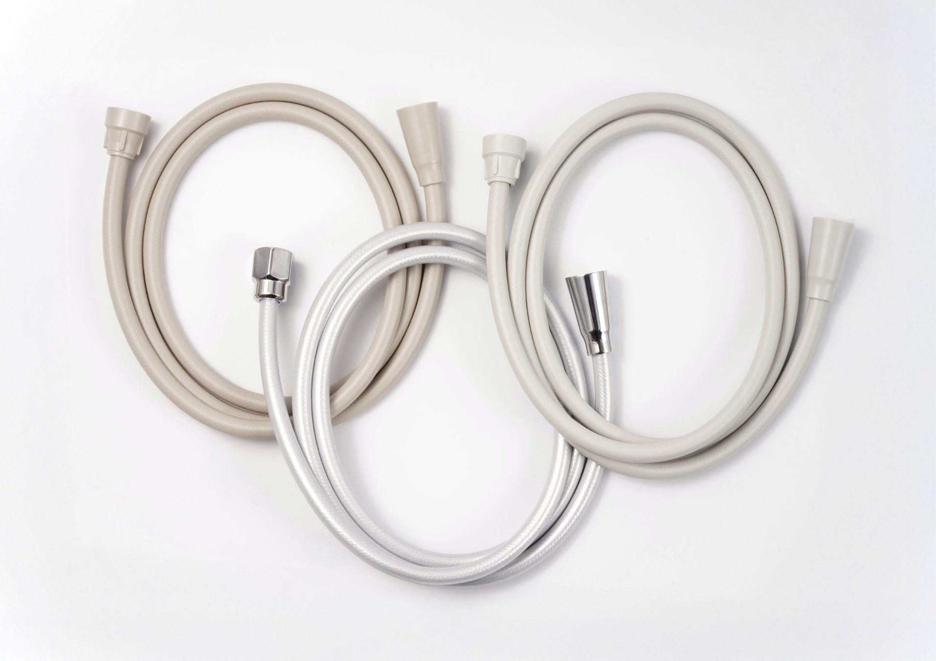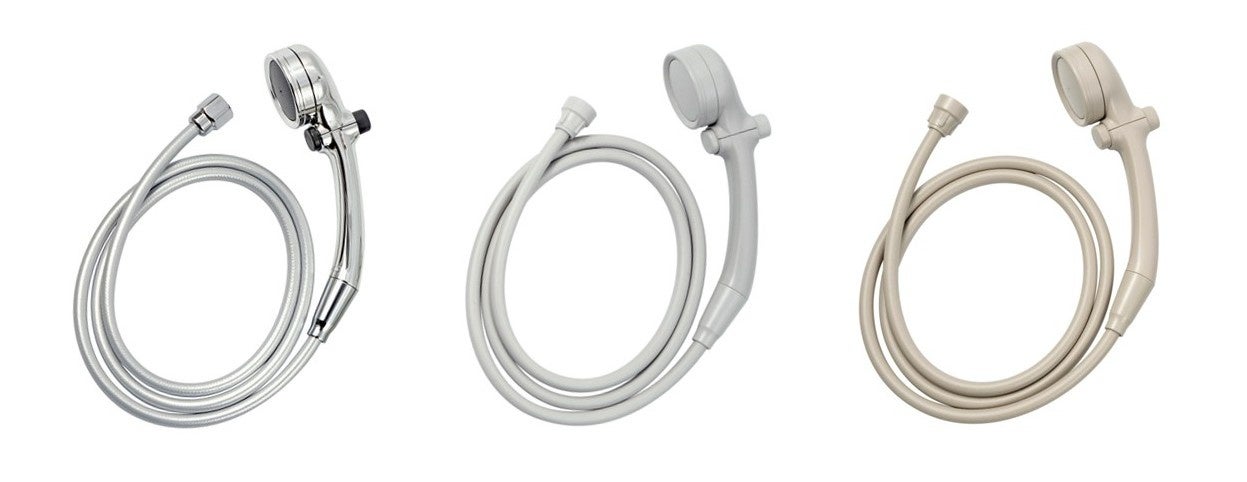 タカギは45年以上にわたり散水用ホースを開発製造してきたノウハウを生かし、本製品の企画・開発を行いました。現代のバスルームに調和するカラーを採用し、ご自宅のバス空間やお好みに合わせられる「シルバー」「グレー」「ベージュ」の3カラーからお選びいただけます。