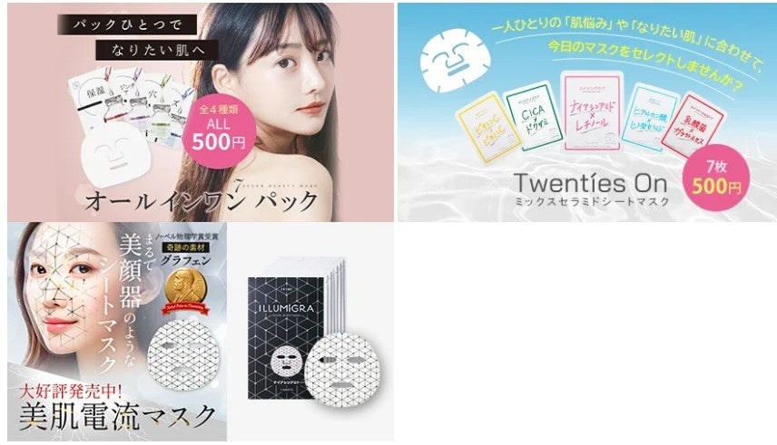 展示会でいつも人気の7枚500円の7ビューティーマスク/ミックスセラムシートマスクや、展示会場限定!まるで美顔器のようなイルミグラシートマスクが登場!