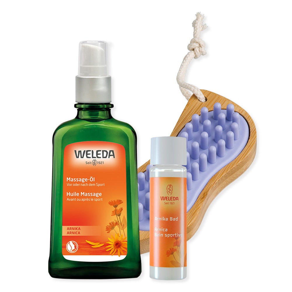 オリジナルボディブラシを使えば毎日のケアも簡単に。「アルニカ バスミルク」のミニサイズでハーブ温浴もできる、寒い季節におすすめのホームケアセットです。