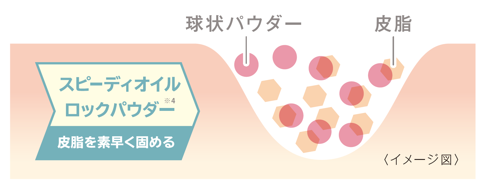 スピーディーオイルロックパウダー※4が皮脂を素早く固めます。