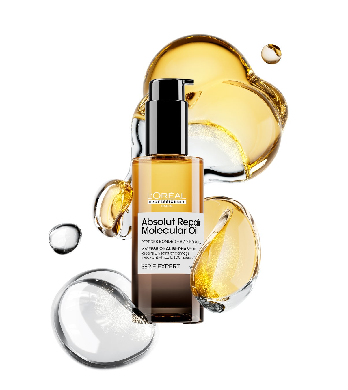 「セリエエクスパート アブソルート R モレキュラー プロフェッショナル デュアルオイル」は、本シリーズのキープロダクトとして、やわらかい手ざわりと長時間のツヤを両立させ、自宅でのヘアケアをさらに充実させます。