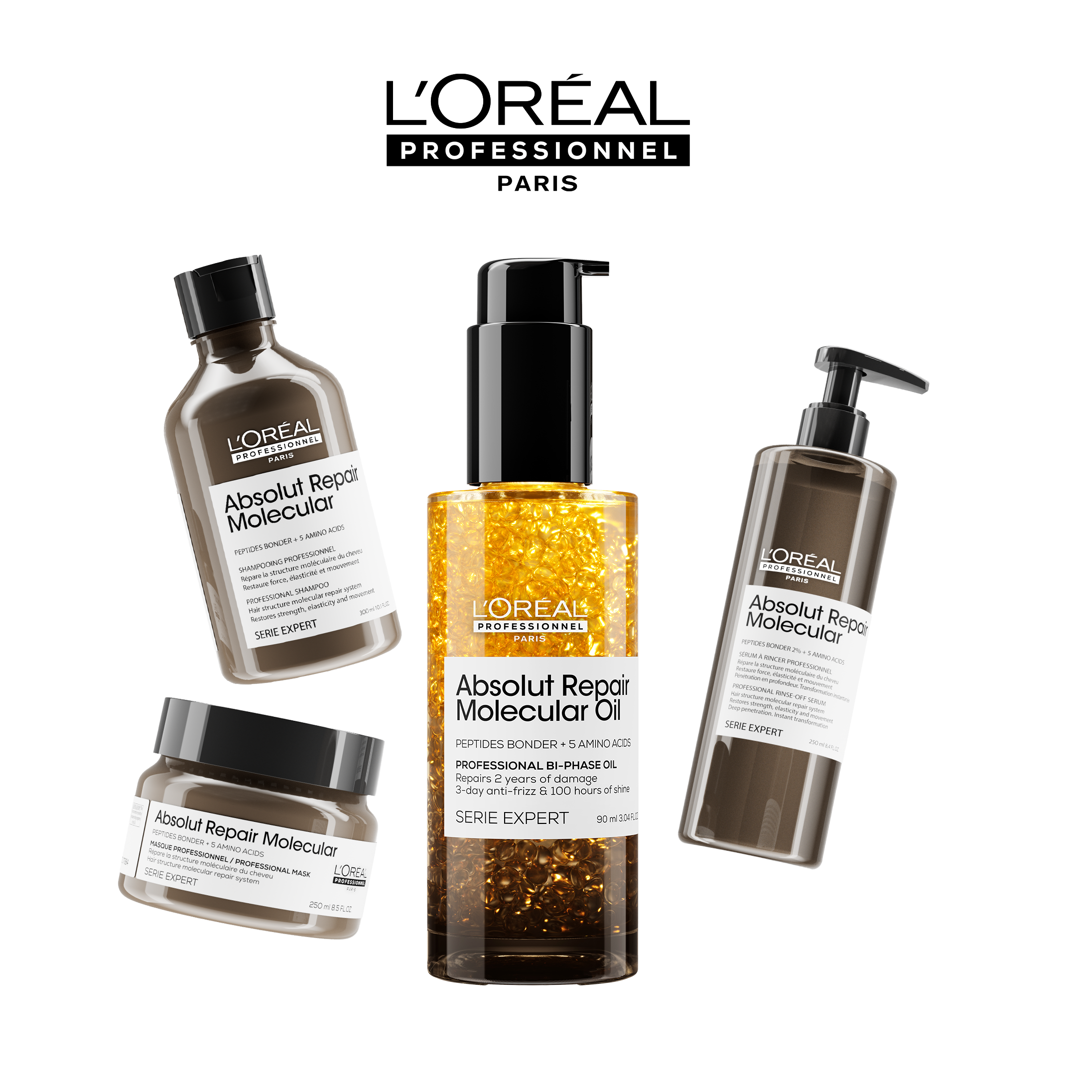 『アブソルートRモレキュラー』シリーズは、先進のアプローチでダメージヘアの補修を目指すロレアル プロフェッショナルのヘアケアライン。
