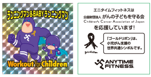 内容:対象店舗にて、会員様がトレッドミル(ランニングマシン)で運動した「総消費カロリー」を集計し、「1kcal=1円」に換算した金額を、当社から「がんの子どもを守る会」へ寄付