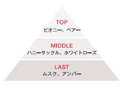 髪を洗う時間から乾かす時間まで、ずっとエレガントに寄り添うラディアントブルームノートの香りです。明るいペアーとピオニーで幕を開け、ハニーサックルとホワイトローズがエレガントに広がっていく、清潔感のあるきらめきのフローラルノートです。