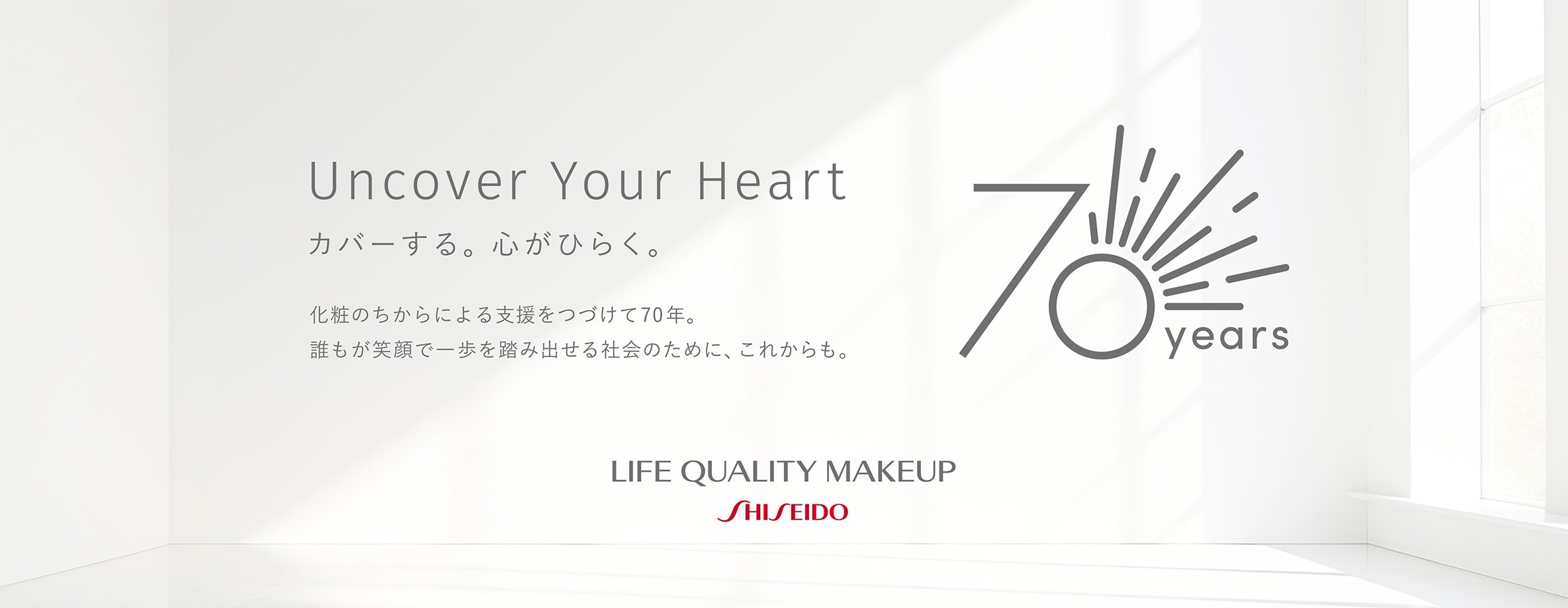 「資生堂 ライフクオリティー メイクアップ」は、2026年に70周年を迎えます。この活動を長きに渡って継続できたことは、私たちが「美」に込めた想いと、  それを必要とする方々の声に真摯に向き合ってきた証です。肌にお悩みを抱える方、社会とのつながりに不安を感じる方、自分らしさを見失いかけた方――。私たちは、メイクアップを通じて「美の力」による自己効力感を育み、誰もが自分らしく生きることに寄りそってきました。