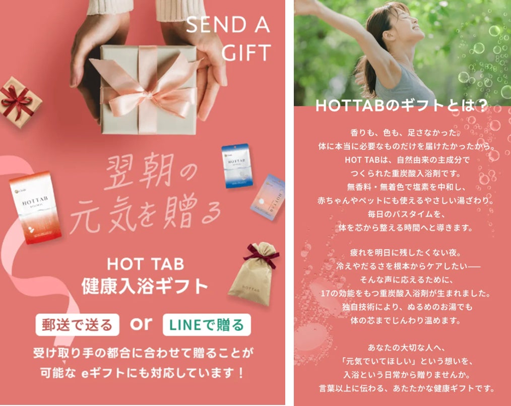 思い立ったその瞬間に、LINEで贈れる。無添加・重炭酸の「HOT TAB 健康入浴ギフト」eギフト開始
