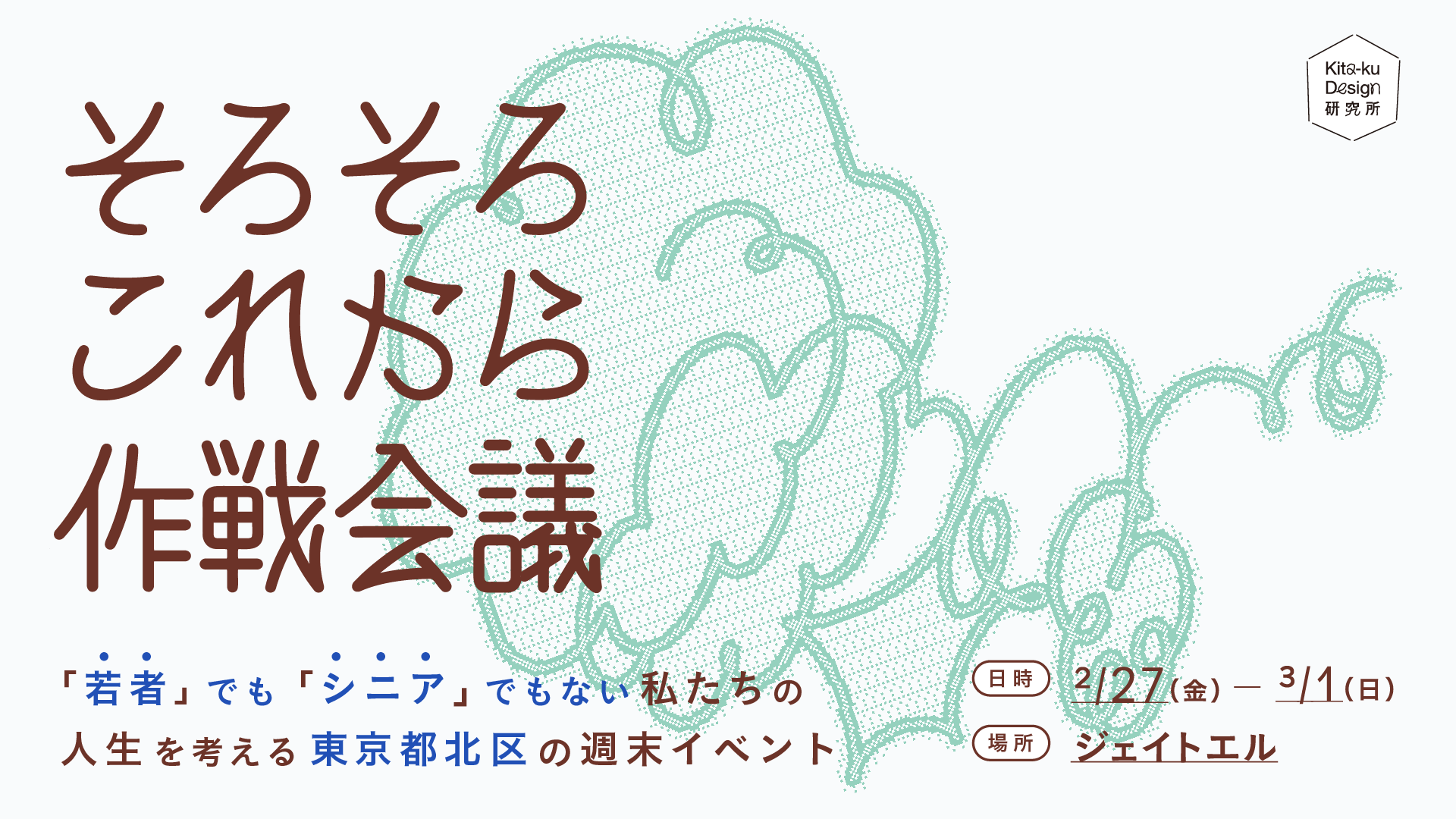 一般社団法人公共とデザイン(東京都渋谷区、共同代表:石塚理華・川地真史・富樫重太)は、東京都北区しごと連携担当課と共催で、50〜70歳前後の人生の転換期を迎える世代を対象としたイベント「そろそろこれから作戦会議」を2026年2月27日(金)〜3月1日(日)の3日間、東京都北区十条にある公共施設「ジェイトエル」にて開催いたします。