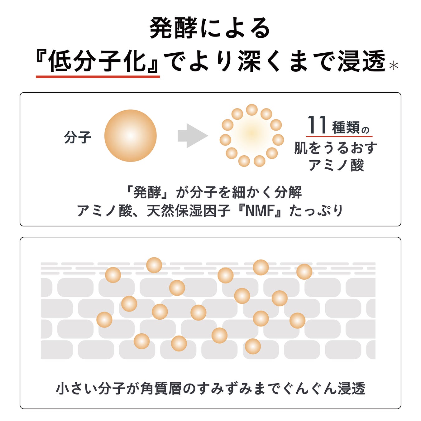 発酵によって生まれた微細な分子 (天然アミノ酸、ペプチド) が、角質層のすみずみまで浸透*