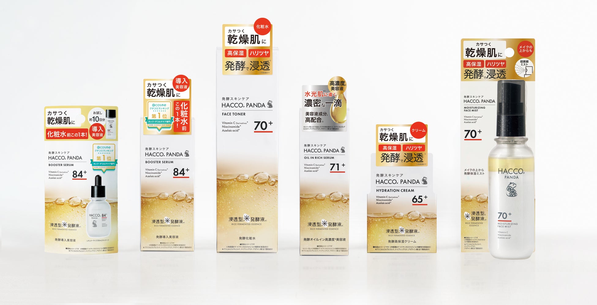 「HACCO.PANDA」は、日本の発酵文化と現代のスキンケア科学をもとに、 発酵スキンケアを世界中に届けたいとの想いから2025年9月に誕生しました。 全品に「浸透*型米発酵液*¹」を贅沢に使用した ラインナップとなっております。