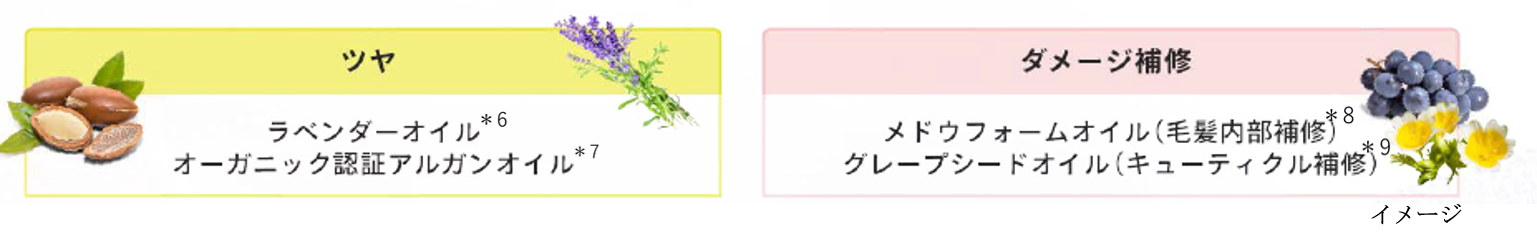 *6 ラベンダー油 *7 アルガニアスピノサ核油 *8 メドウフォームエストリド *9 ブドウ種子油