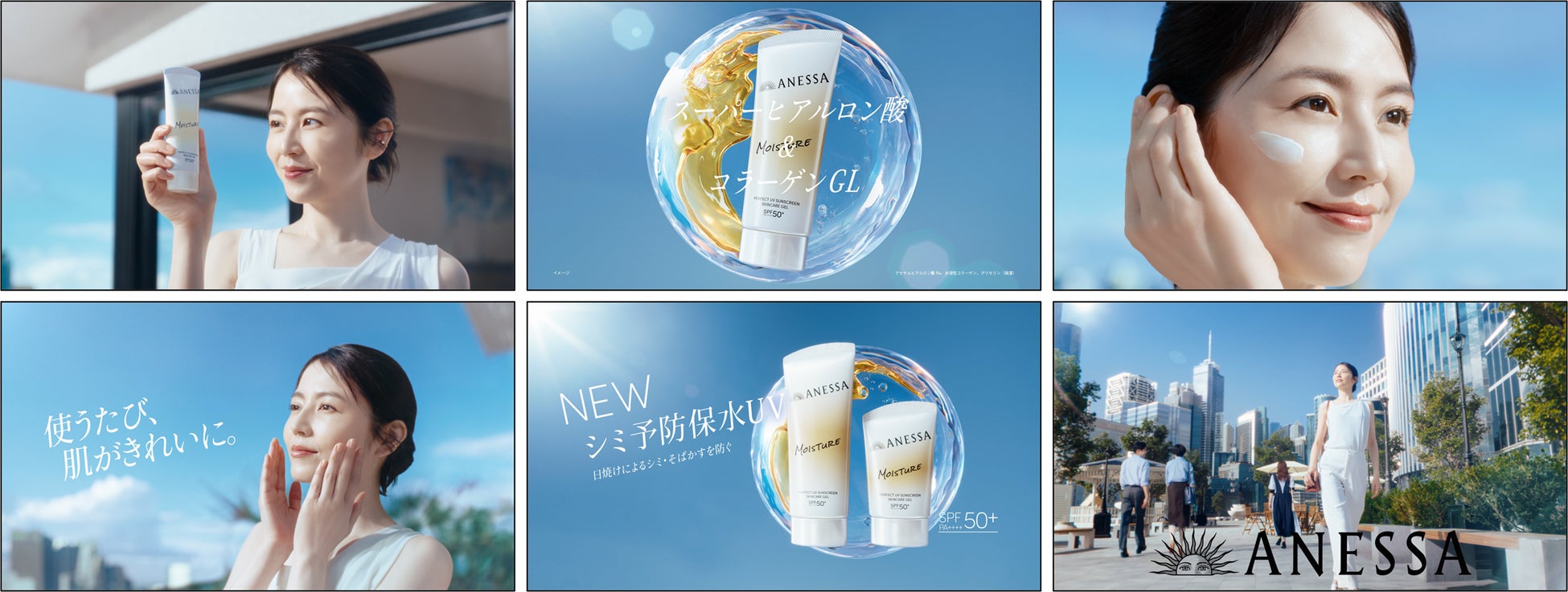 また、「アネッサ パーフェクトUV スキンケアミルク NA」の新CMでは、炎天下の中でも、「わたしの肌は、くずれない。」というセリフの通り、鮮やかなブルーの衣装を身にまとった長澤さんのくずれない肌にフォーカスしたCMとなっています。