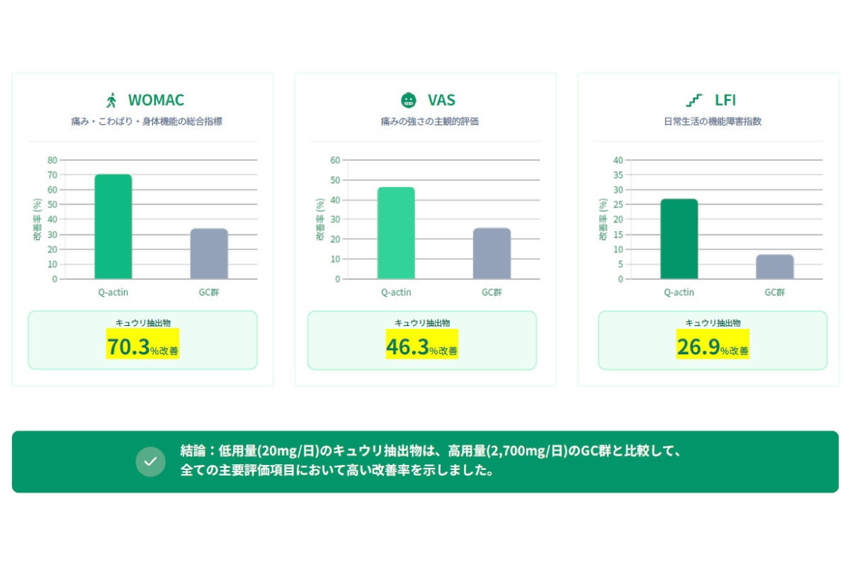 関節への効果に留まらず、最新の臨床試験では現代人のQOLを支える驚くべきデータが示されました。