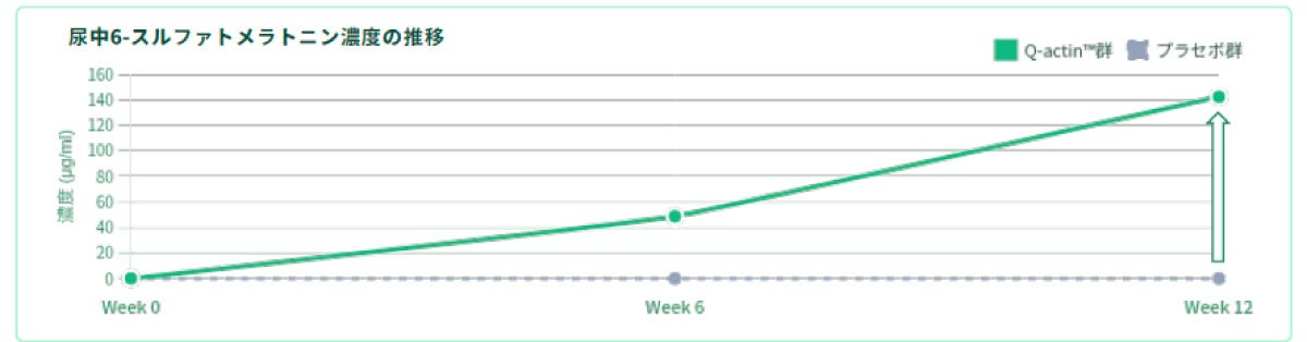客観的睡眠指標: 摂取12週間で、尿中メラトニン濃度が摂取前と比較して約142倍という劇的な増加を記録(プラセボ群は検出限界以下)。