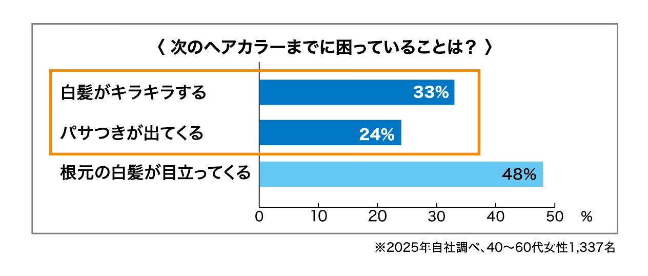 ヘアカラーをして時間が経ち、次のヘアカラーをするまでに困っていることをアンケート調査。
