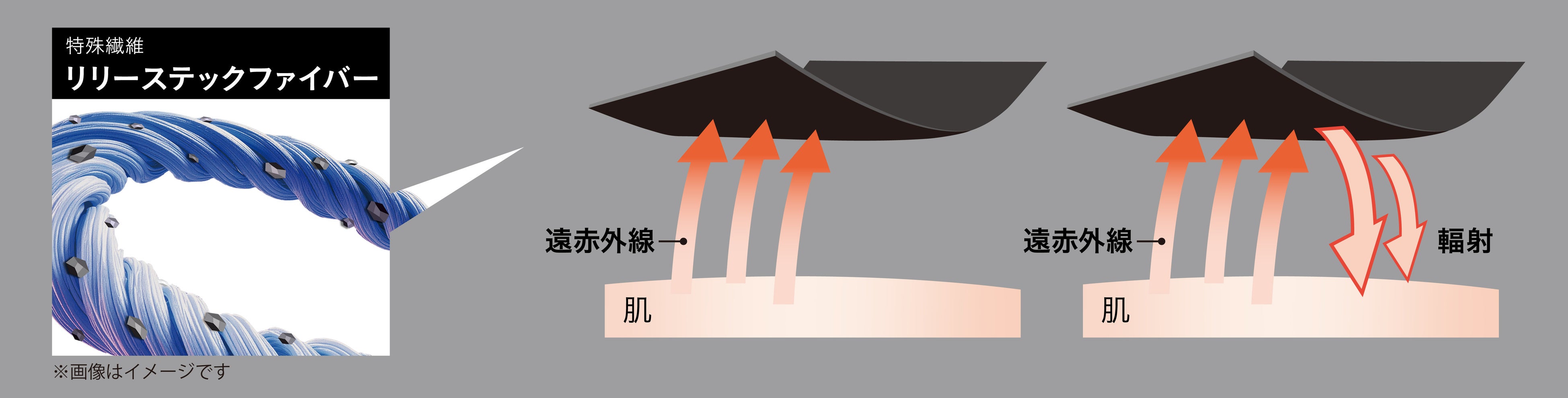 ナノレベルで練りこまれた鉱石とミネラル、そして厳選されたセラミックスを配合したオリジナル繊維。何度も試作を経て、最適な配合で効果を実現。身体から自然に発せられる遠赤外線を吸収・反射し、血行促進。筋肉のハリ・コリの緩和や疲労をやわらげ、コンディションをととのえます。
