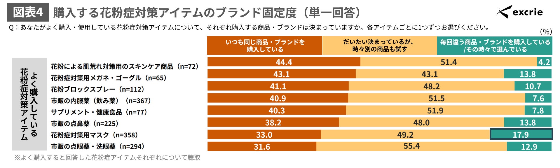 購入する花粉症対策アイテムのブランド選択の固定度(単一回答)