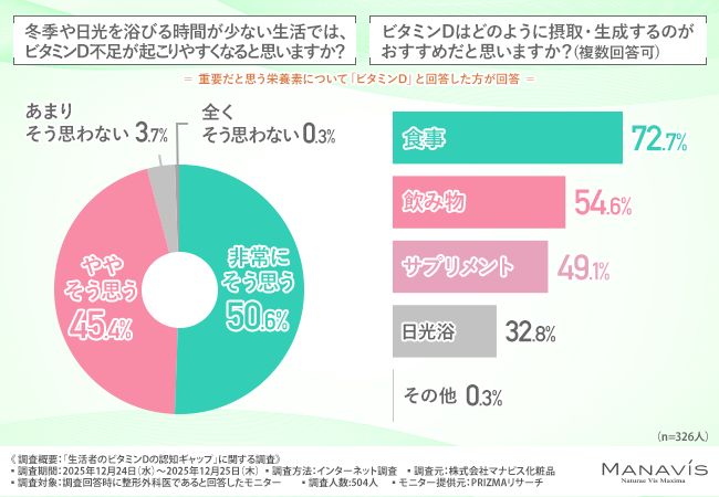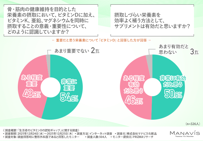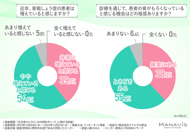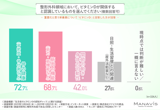 そこで今回、株式会社マナビス化粧品https://www.manavis-cosme.co.jp/)は、整形外科医を対象に、「生活者のビタミンDの認知ギャップ」に関する調査を実施しました。