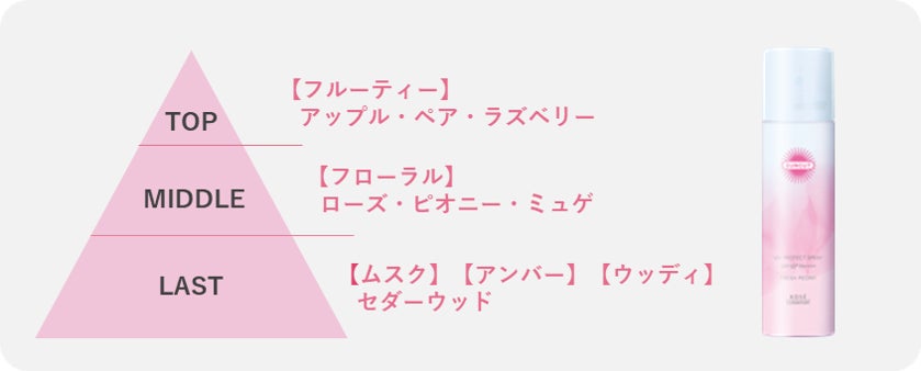 咲きたてのピオニーを思わせるみずみずしく透明感あふれる香り。可憐さとフレッシュさが重なり合い、 心をときめかせるように広がります。