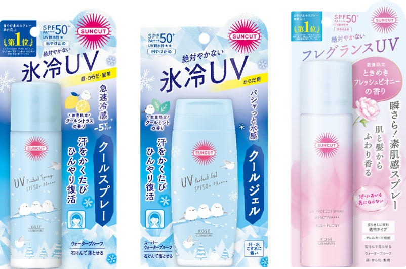 コーセーコスメポート株式会社(本社:東京都中央区、代表取締役社長:小林 孝雄)は、日やけ止めブランド『サンカット®』から、2026年3月2日より、汗をかくたびひんやり復活「クールUV プロテクトスプレー」「クールUV パーフェクトジェル」(2品目3品種、ノープリントプライス)を、2026年4月1日から「フレグランスUV スプレー ピオニーの香り」(1品目1品種、ノープリントプライス)を全国の量販店・ドラッグストアを中心に数量限定で順次発売します。