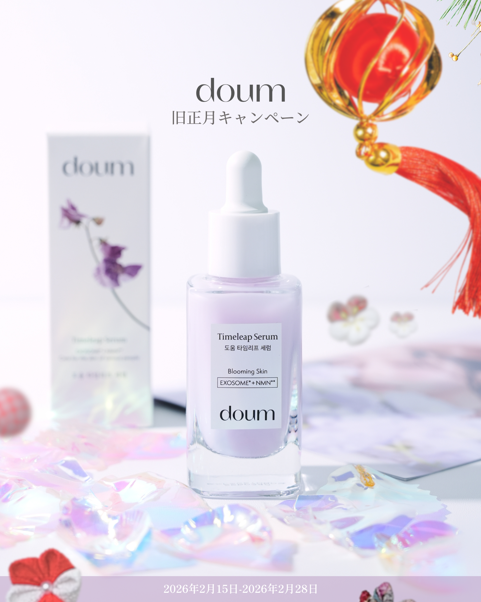 スキンケアブランド「doum(ドウム)」株式会社doum(本社:東京都渋谷区)は、日本のお正月、そして韓国の旧正月という節目を迎えるこの時期にあわせ、2026年2月15日(日)〜2月28日(土)までの期間限定で、Amazonにてdoum製品をご購入いただいた方を対象とした「お正月キャンペーン」を実施いたします。本キャンペーンでは、対象期間中にAmazonでdoumをご購入いただいた方の中から、抽選で合計500名様にAmazonギフトカードなどが当たるお年玉企画となっております。