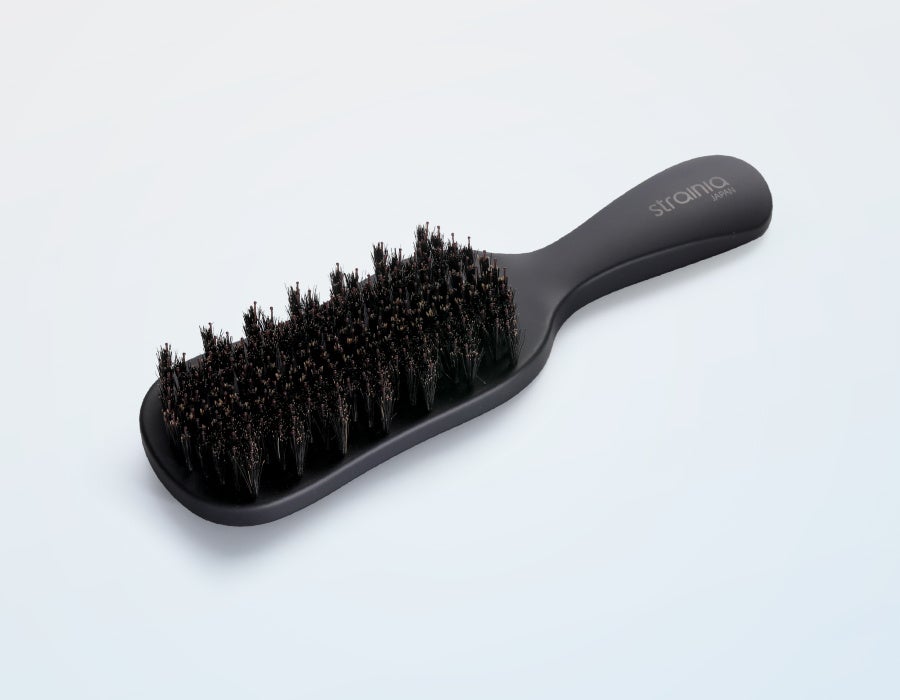 2種類の天然毛+独自の植毛の配置構造によって、とかすだけでまっすぐな髪に導く、くせ毛の方のためのヘアブラシ。アイロンに代わり朝の時短・ダメージ軽減。