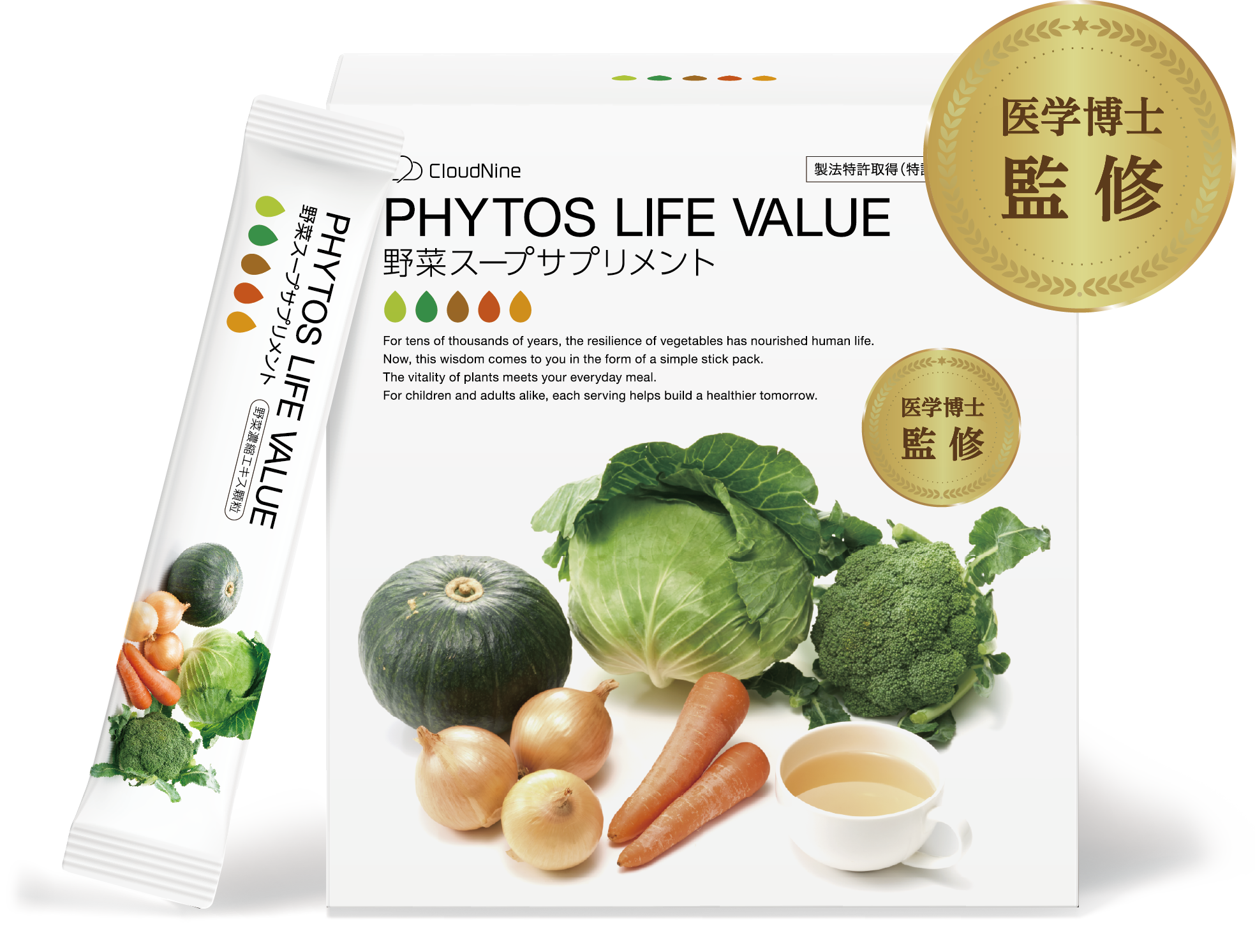 NMNサプリメント「Refeelas(リフィーラス)」を⼿掛ける株式会社CloudNine(本社:広島県広島市、代表取締役社⻑:島本 倖伸)は、2026年1月1日より、革新的な野菜スープサプリメント「PHYTOS LIFE VALUE(ファイトスライフバリュー)サプリメント」を販売開始しました。