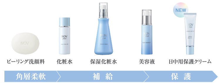 「ノブプラスシリーズ」は2024年2月に誕生した、美容皮膚科学研究から生まれた美しいお肌へ導く機能性スキンケアです。古い角質を取りのぞき角層をやわらかくととのえ、アミノ酸※1やビタミン※2などの保湿成分を補給し、お肌を保護します。