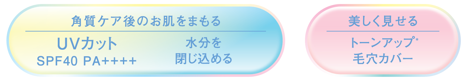 角質ケアというと、古い角質を取りのぞくことに目が向きがちですが、その後のお手入れも重要です。角質ケア後のととのったお肌から、紫外線や乾燥によってうるおい・透明感・つやが失われないよう、“保護”することが美しいお肌への近道だと考えています。