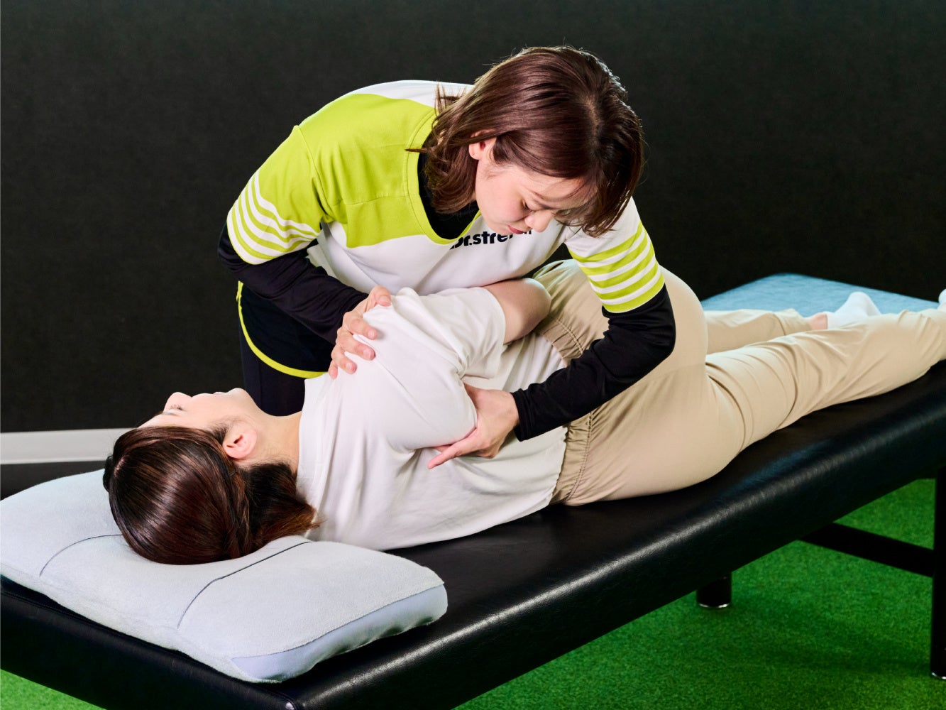 春に向けて、寒さで硬くなっている身体を伸ばし・ゆるめることで、不快感をリセットし理想のコンディションへと導きます。一人では伸ばしきれない深層筋(インナーマッスル)にアプローチする「コアバランスストレッチ」は、16年間で多くのお客様・プロアスリートの皆様に支持されてきたドクターストレッチだけの独自技術です。