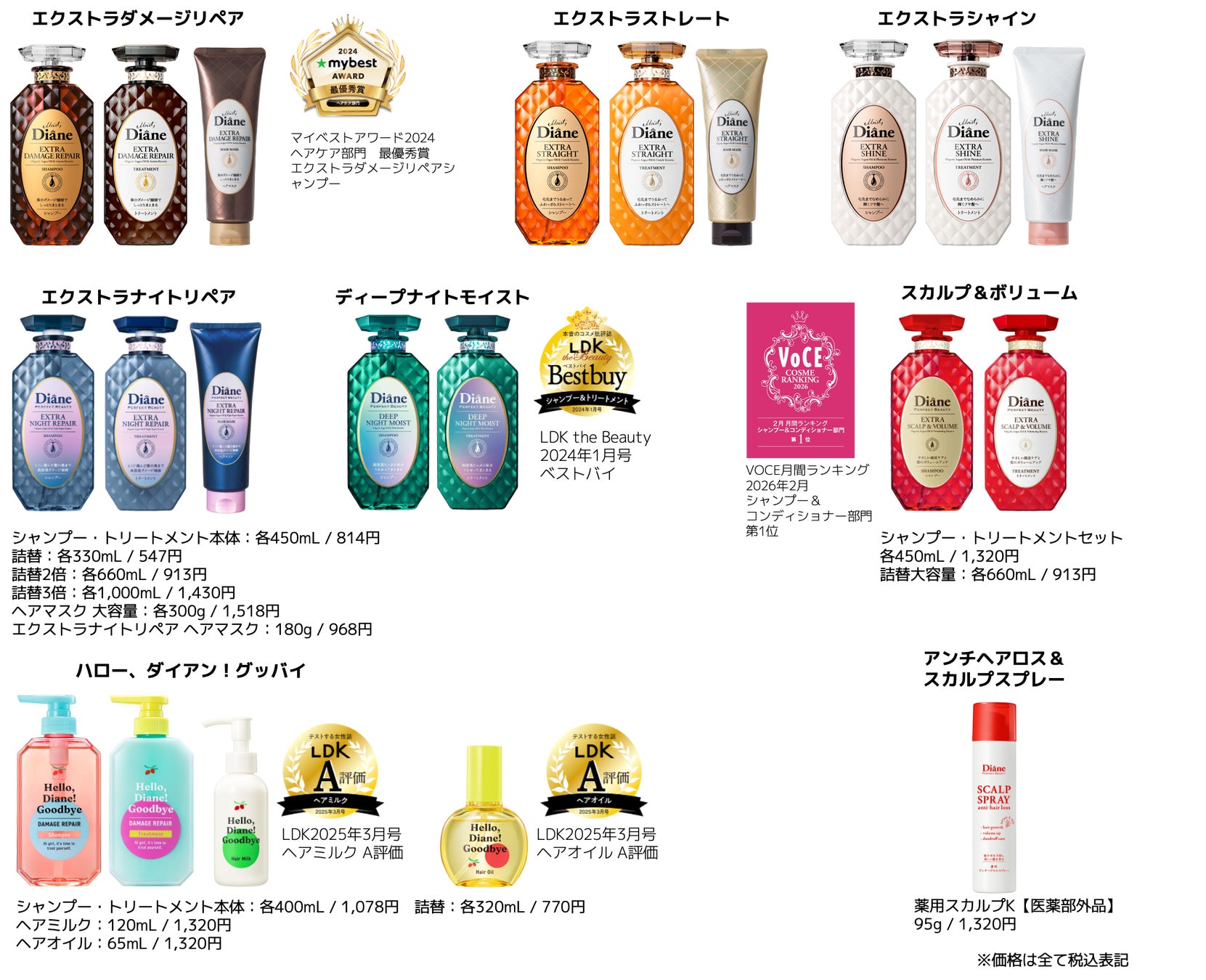 ダイアンのドライシャンプーシリーズは、シュッとスプレーするだけで「頭皮汚れスッキリ」「スタイリング」「ヘアフレグランス」「ニオイ・汗ケア」「ツヤ髪復活」の1本5役を叶える人気アイテム。2019年の発売以来、多くのお客様に支持され、ドライシャンプー売上において6年連続No.1ブランド*を獲得しています。