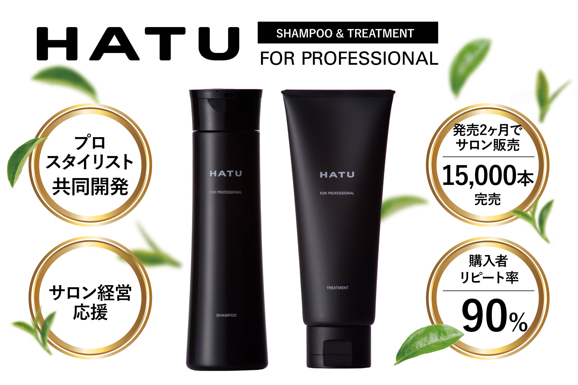 HATUはサロン専売のプロフェッショナル用ヘアケアブランドです。このたび第1弾としてリリースしたシャンプー&トリートメントは、多くのプロスタイリストの悩みや要望を聞き、それらを解決すべく徹底的にこだわって研究・開発されました。