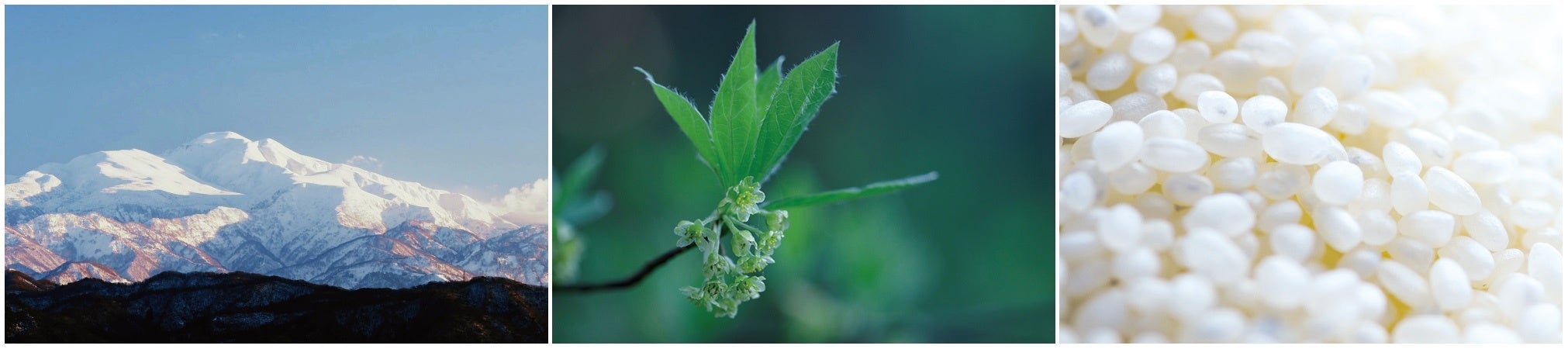 酒粕(*1)と白山の木々や花をイメージしたアロマのハーモニー。