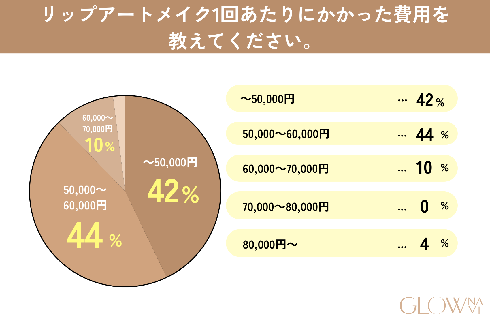 1回あたりの施術費用については、「50,000円~60,000円」と回答した人が44%で最も多い結果となりました。