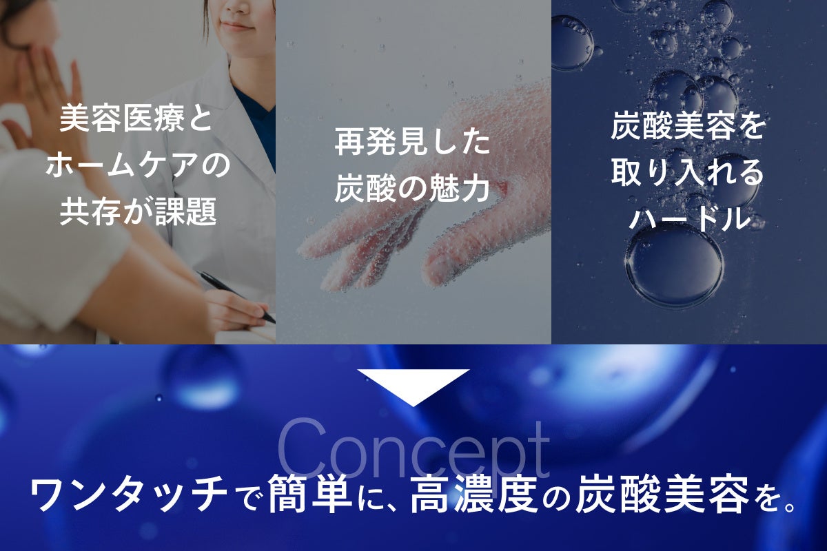 サロンやクリニックをはじめとした美容施術への関心がますます高まる一方で、「なかなかまとまった時間が取れない」「いい状態をキープすることが難しい」といった声を耳にしてきました。このように忙しさと根深い肌悩みの両方を抱える現代女性には、クイックに「自分に手をかけている」実感が得られるホームケアアイテムが必要だと考え、SISIは「炭酸*¹美容」に着目しました。