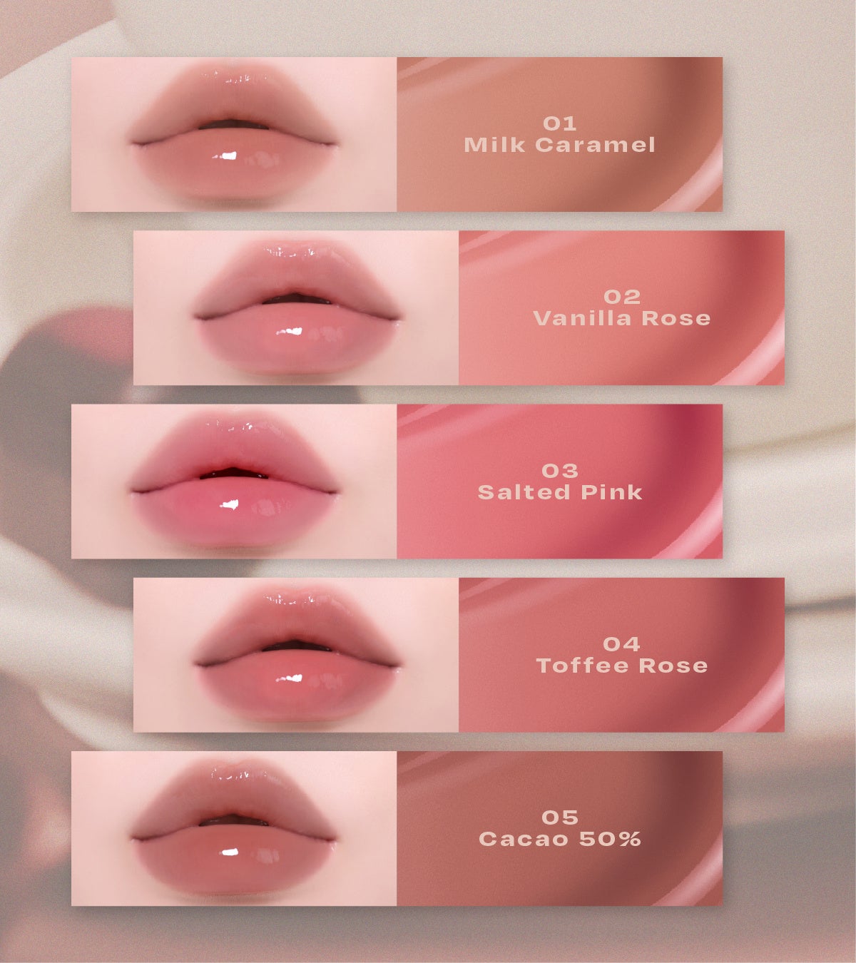 カラーはヌード・ピーチ・ローズ・ブラウンまで幅広く揃えたニュートラルヌードトーンで、肌色やシーンを選ばず、上品で洗練されたMLBBメイクを演出。さらに、シカPDRNを配合し、エイジングケア※と唇の鎮静ケアをサポート。ハチミツエキスやカカオシードバターによる高い保湿力で、ツヤ・カラー・唇ケアを同時に叶える高機能グロスです。