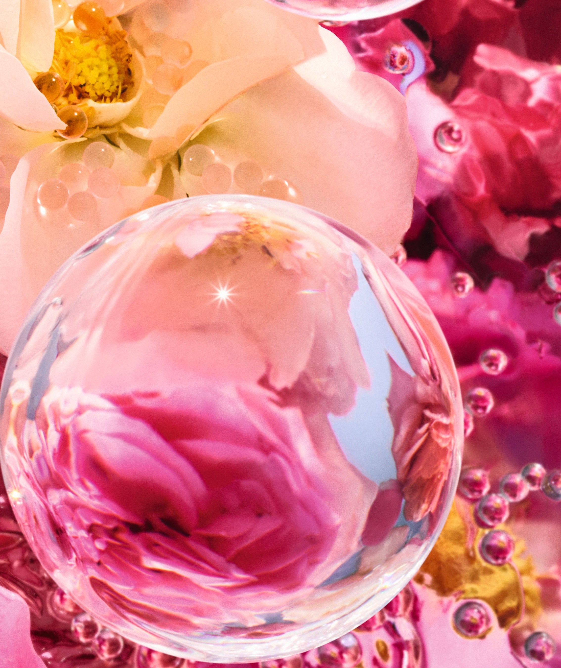 革新的パフュームパール配合のフレグランスにおいて、〈フローラブルーム〉のシグネチャーは、より繊細でクリスタルのような表情へと再解釈されました。朝露に包まれたかのような、極めてリアルな花々が、肌の上で一気に咲き誇ります。チュベローズの陽光あふれる官能性に、ローズの優美さ、アイリスとヴァイオレットのパウダリーなニュアンスが重なり合います。マンゴーアコードのジューシーなアクセントが、色彩豊かなブーケ