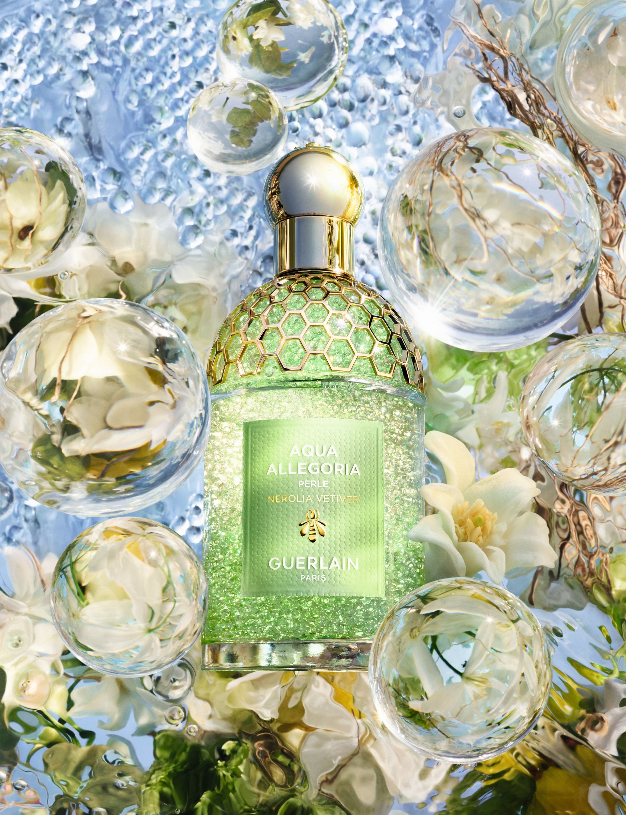 アヴァンギャルドな精神と、長年培ってきた処方技術を融合させ、ゲランはフレグランスの常識を覆します。誕生したのは、革新的パフュームパール配合のフレグランス〈アクア アレゴリア ペルレ〉。ゲラン初となる、マイクロパール技術によるオーデパルファンです。MicroCaps社との独自のコラボレーションによって生まれた先進技術¹により、高濃度の香料を閉じ込めたマイクロパールと、アルコールフリーのウォーターベースを融合した二相フォーミュラ。フレグランスとスキンケア²がかつてないかたちで出会った、魅惑的なスキンケア フレグランス コレクションです。