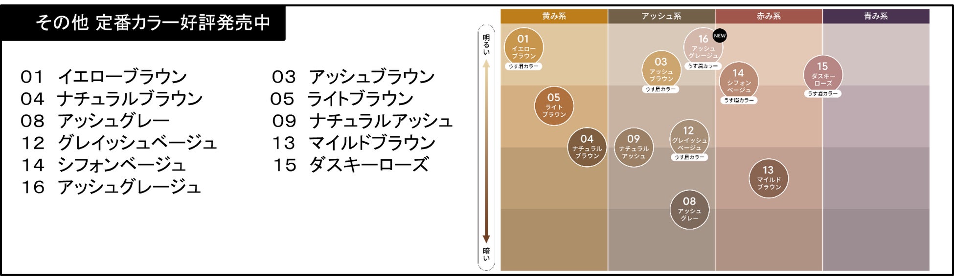 微かな赤みと透明感が 自眉の重さを払拭し、 洗練された抜け感を演出する肌なじみの良いアッシュ系カラー。