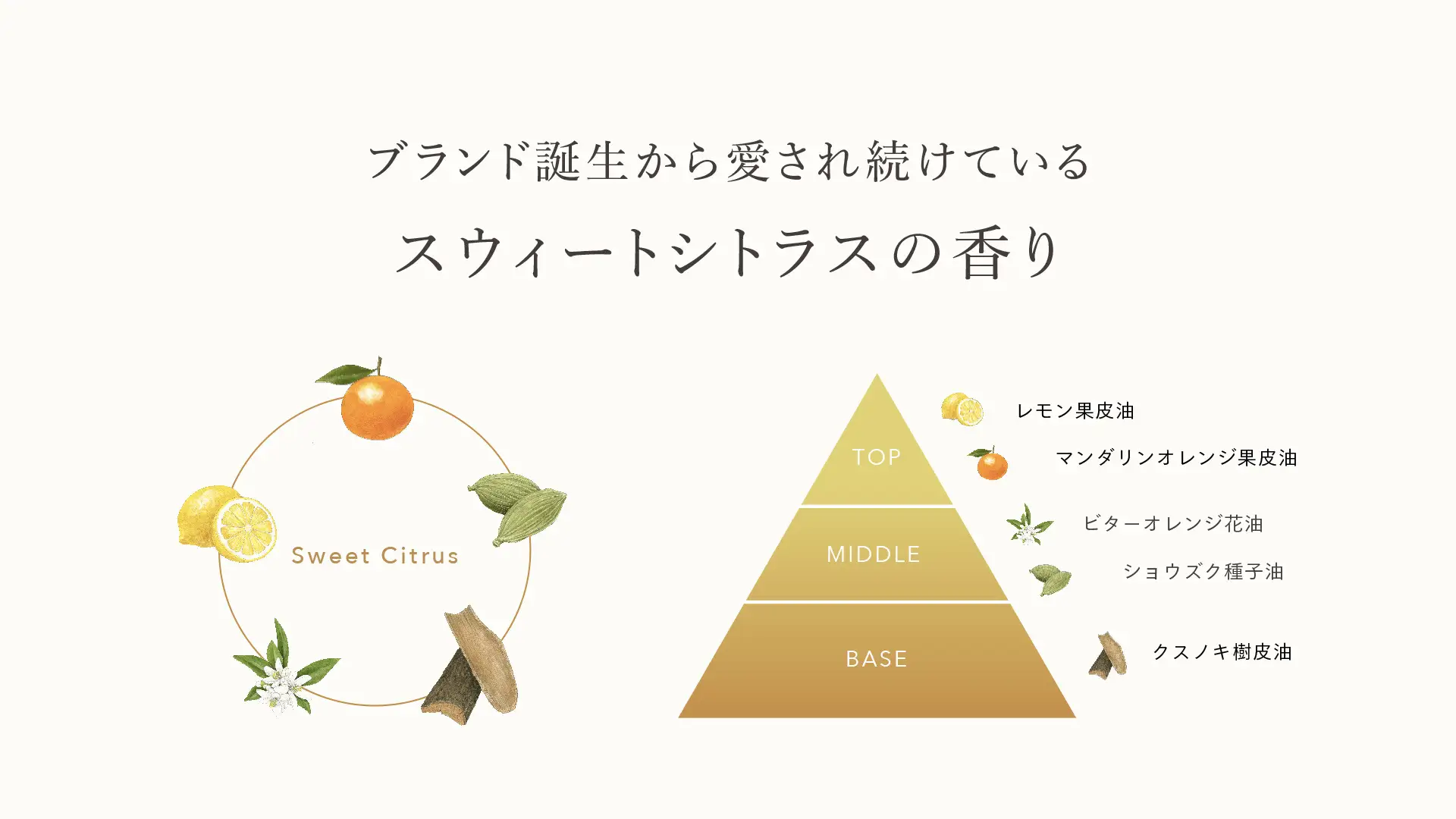 ⑤「N organic Basic」シリーズ共通のスウィートシトラスの香り