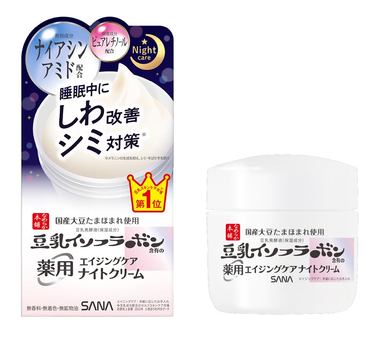 近年、「質の良い睡眠」「ナイトルーティーン」などの言葉が一般化し、また限られた時間でしっかりケアをしたいというタイパ需要から、睡眠そのものが自己投資や美容行動の一部になり、夜間訴求アイテムの人気が高まっています。「サナ なめらか本舗 薬用リンクルナイトクリーム ホワイト」も2年で売上145%伸長*2、累計販売個数385万個*3を突破し、「毛穴ケア※1効果」や「パック感」を評価いただいています。