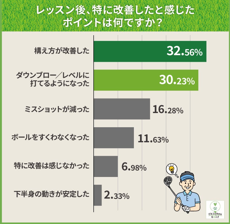 ゴルフレッスン後に「何らかの改善」を感じた人は9割以上