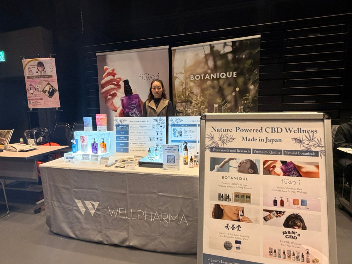 製品の特長や開発背景に加え、CBD(カンナビジオール)の基礎知識、海外での活用事例、日本国内での位置づけなどについて説明を行い、多くの来場者が足を止め、熱心に耳を傾ける様子が見られました。