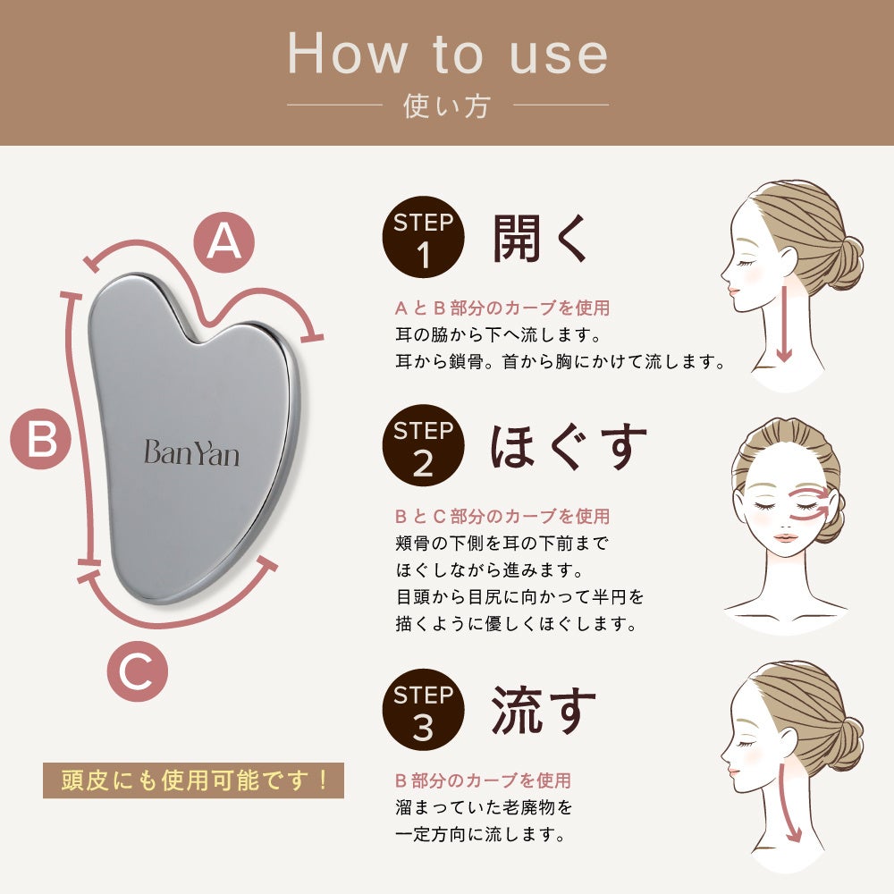 古くから親しまれてきた“カッサ”の発想を、Ban-Yanらしい日常使いのケアに落とし込みました。