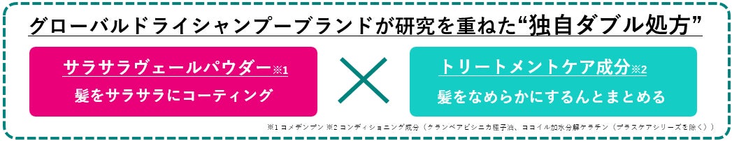 日本では、2025年5月、まとまりを求めるアジア人の髪質に合わせて開発されたラインアップを世界最速で発売。朝のスタイリング前やお出かけ先、寝る前など1日中使用でき、髪を瞬間※3でまるで髪質※4が変わったかのようにアップデート。 “リフレッシュ”だけではない、今までにないドライシャンプーの新価値を提案してまいります。