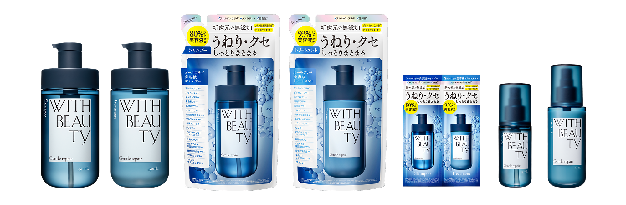 ウィズビューティはそんな方でも毎日安心して使えるアウトバスアイテムを目指し、“オールフリー*美容液ヘアオイル・ヘアミルク”を開発。肌への刺激成分*³を極限までカット*⁴しつつも、髪の芯まで潤いを与えてうねり・クセをケアするこだわりの処方で、しっとりまとまる美髪へと導きます。