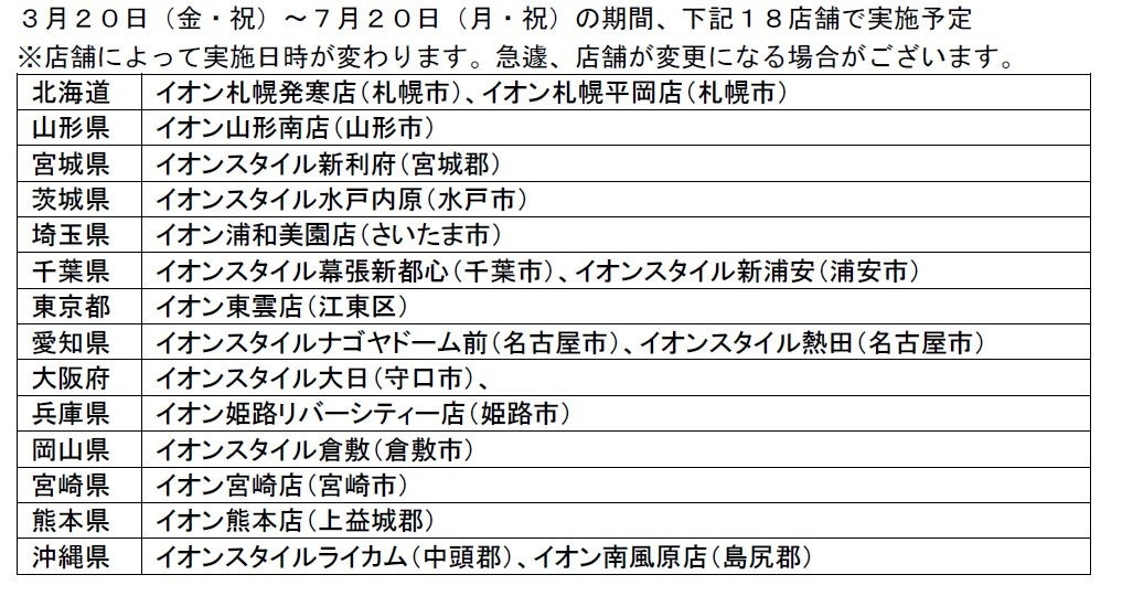 ファミリー層に向けて正しい紫外線対策習慣を育むリアル体験型イベント「おでかけ 太陽の教室」を3月20日(金・祝)~7月20日(月・祝)の期間、「イオン」「イオンスタイル」の18店舗で開催します。