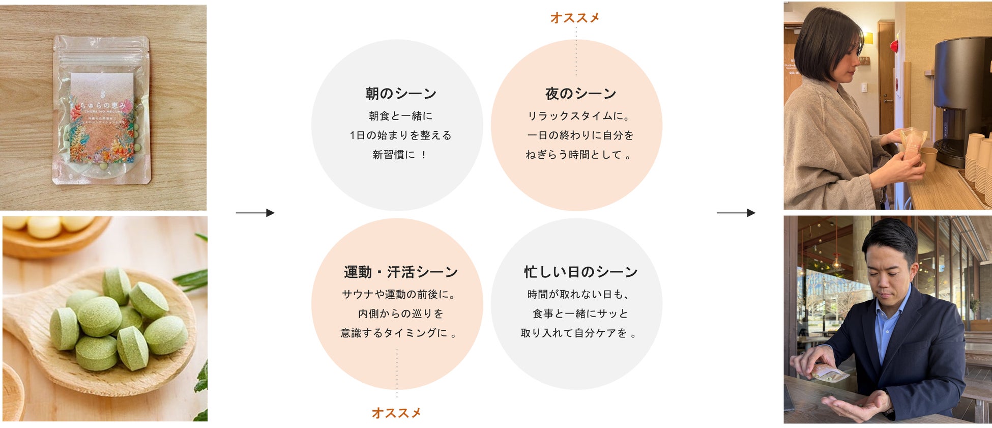 サウナや汗活など外側からのケアに加え、忙しい日々の中でも続けられる内側からの巡り習慣として取り入れていただきたい。