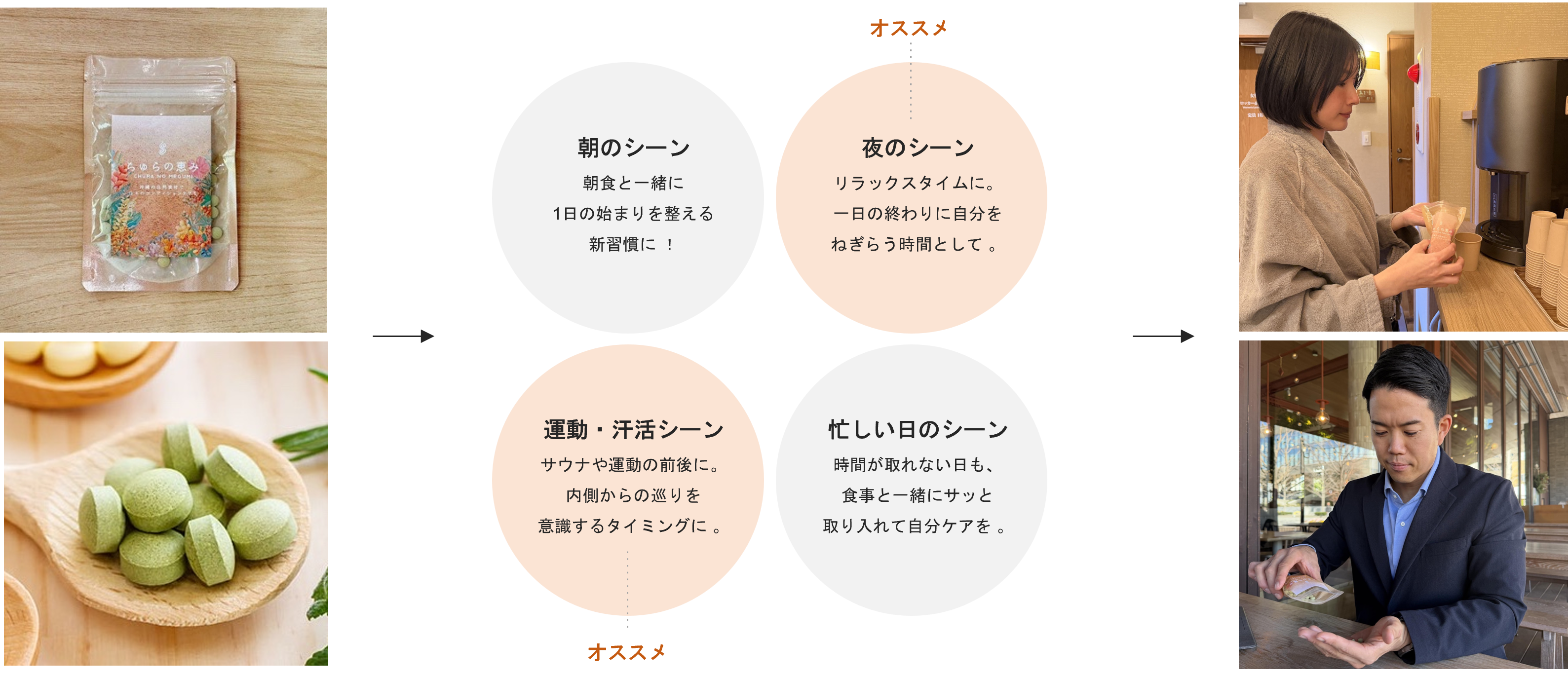 サウナや汗活など外側からのケアに加え、忙しい日々の中でも続けられる内側からの巡り習慣として取り入れていただきたい。