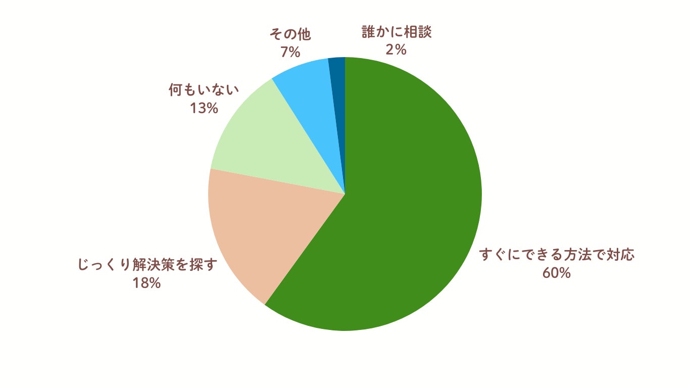 不快を感じた際の対応について「すぐできる方法で対応する」が60%、次いで「じっくり解決策を探す」が18%と約8割が何らかの行動をとっていることが分かりました。<図3>