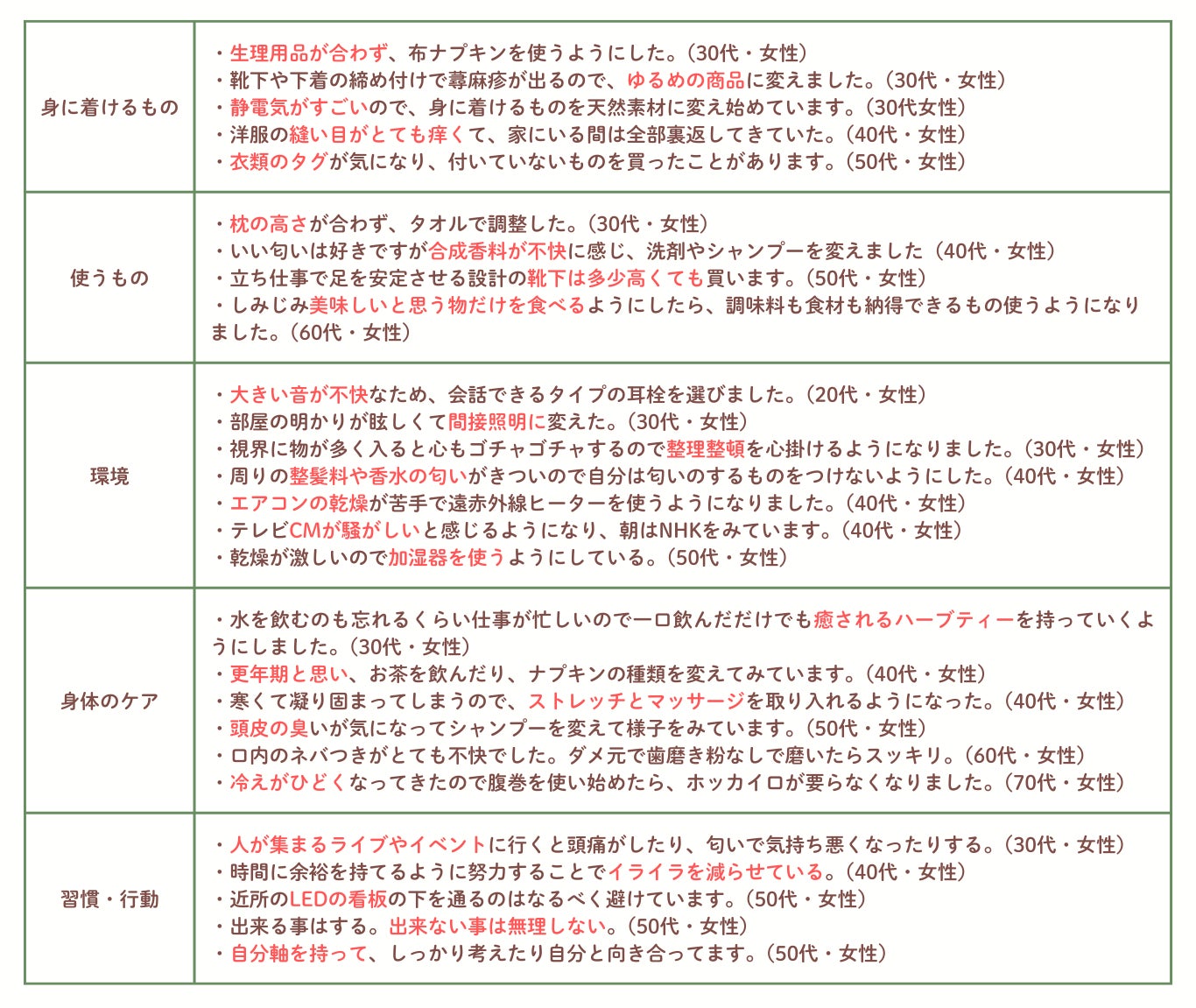 97%が不快を我慢でなく、生活習慣・物選びを見直すきっかけとして肯定